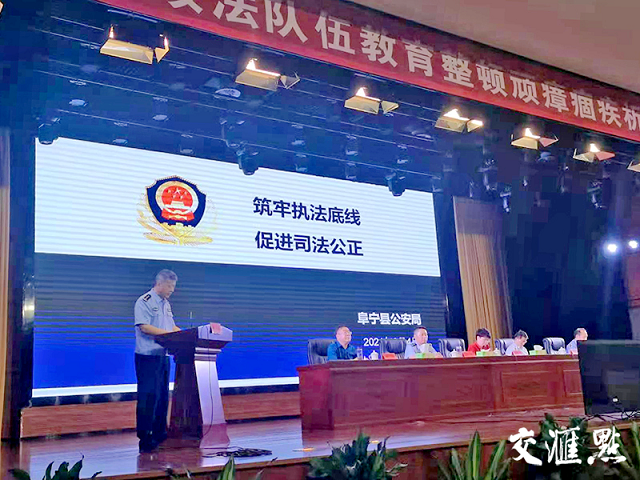 6月4日上午,阜宁县召开政法队伍教育整顿顽瘴痼疾析讲评现场观摩会。县委常委、常务副县长、政法委书记郭碧玉讲话,县委常委、县纪委书记王怀亮主持会议,副县长、公安局长王伟、检察院检察长何新龙参加会议。