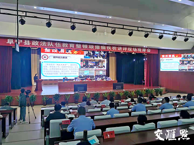 6月4日上午,阜宁县召开政法队伍教育整顿顽瘴痼疾析讲评现场观摩会。县委常委、常务副县长、政法委书记郭碧玉讲话,县委常委、县纪委书记王怀亮主持会议,副县长、公安局长王伟、检察院检察长何新龙参加会议。